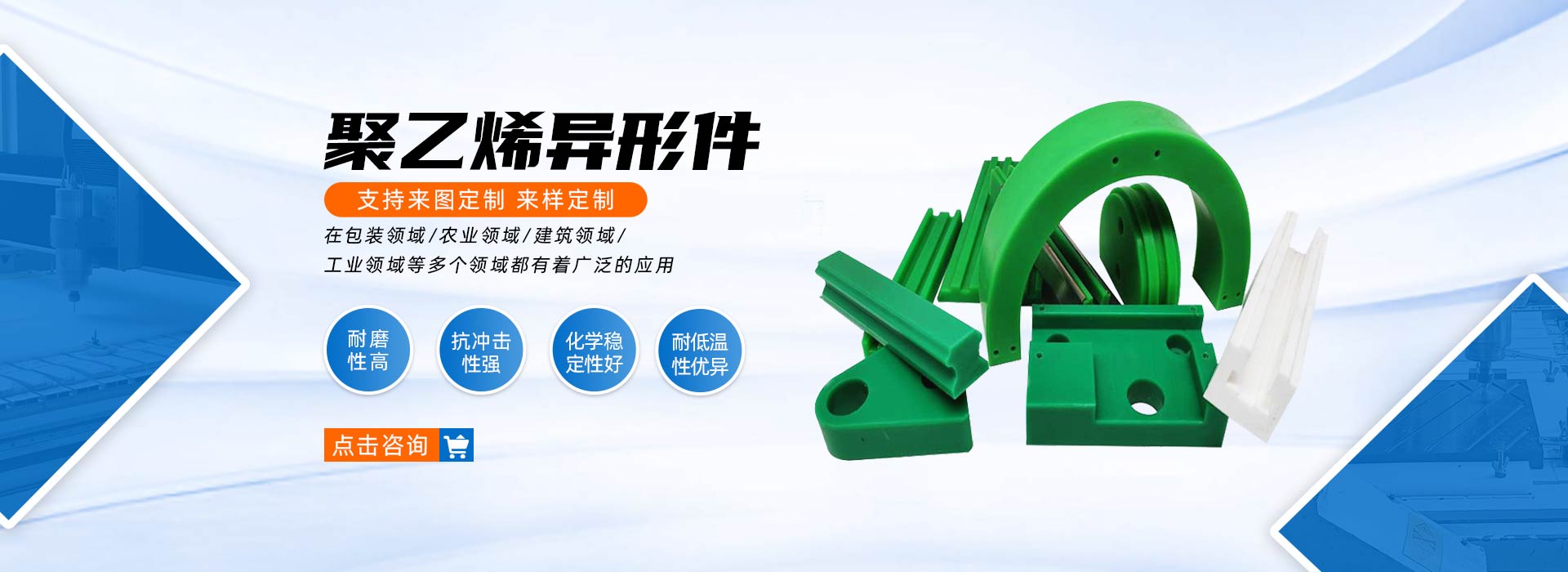 主要生產(chǎn)防滑鋪路板、仿真溜冰板、超高分子量聚乙烯板內(nèi)襯、塑料托輥、聚乙烯砧板;異形件、支腿墊塊、防輻射板等超高分子量聚乙烯改性制品